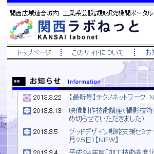 セキュリティ面やアクセシビリティなどにおいて厳しい条件を要求される公的機関事例です。関西広域連合域内の工業系公設試験研究機関(以下公設試)のポータルサイトをMODX Evolution(以下MODX)で構築しました。