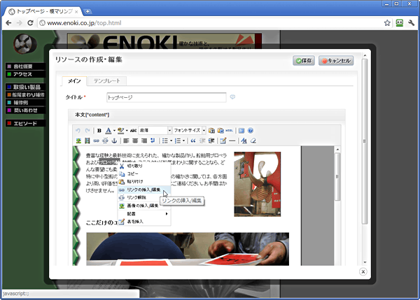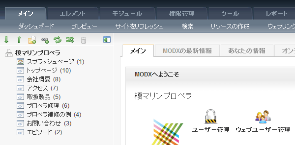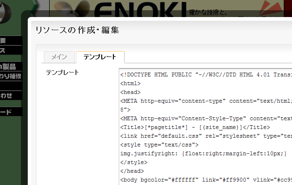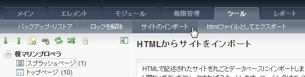 ▲MODXのインポート機能を使って、ホームページビルダーで作られたHTMLデータをそのまま取り込みました。ファイルはShift-JISで書かれていましたが、エンコードとMETAタグのcharset属性は、インポート時に自動的にUTF-8に変換されます。
